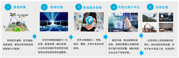 (2)數據處理:對空天地數據進(jìn)行輻射歸一化處理、配準處理、融合處理,對管道周邊環(huán)境時(shí)序時(shí)序信息變化提取和應急搶險信息快速提取。