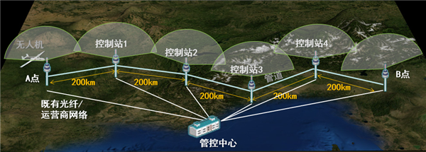 通過(guò)建立地面測控站,管控中心通過(guò)測控站組網(wǎng)對無(wú)人機進(jìn)行遠程控制。按飛行計劃獲取沿線(xiàn)的影像及視頻數據,通過(guò)一體化測控網(wǎng)絡(luò )匯集傳遞到管控中心。無(wú)人機測控網(wǎng)絡(luò )示意圖如圖 3所示。