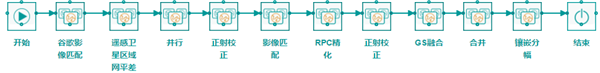 實(shí)現多種載荷、大量數據的自動(dòng)化處理,支持異源影像的自動(dòng)匹配,支持不同衛星聯(lián)合區域網(wǎng)平差,有效保證成果精度的同時(shí)大幅度提高產(chǎn)品的生產(chǎn)效 率。遙感影像自動(dòng)化處理流程如圖 4所示。