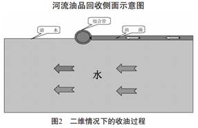 2. 油水分離和油品回收, 當外泄油品被架設在河水面上的管件攔住后, 隨著(zhù)上游浮油順水不斷下流, 欄管前的油位不斷增高, 由于攔管上開(kāi)設的進(jìn)油槽下沿僅高于水面3—5mm, 當油位高于水面3—5mm時(shí), 浮油就會(huì )自然流進(jìn)進(jìn)油槽, 達到了“攔水放油”和油水分離的效果, 油經(jīng)攔油管流至回收器儲油箱, 啟泵可將油外輸回收。
