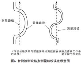 因線(xiàn)路探測不明或線(xiàn)路不熟悉, 或僅憑目測或經(jīng)驗將彎曲管線(xiàn)錯誤判斷成直管段等, 使得缺陷點(diǎn)測量線(xiàn)路與管道走向發(fā)生了偏差, 這是缺陷定點(diǎn)工作中最為常見(jiàn)的低級失誤。 如圖6, 兩種情況中, 線(xiàn)路測量路徑與管道走向路徑發(fā)生了偏差。