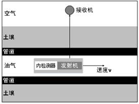 運動(dòng)的極低頻發(fā)射機發(fā)出的磁信號自管道內經(jīng)由管壁和土壤等介質(zhì)傳播到地面的一定范圍空間,其傳播機理是內檢測器外跟蹤定位的核心理論。