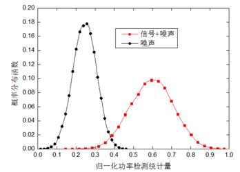 采用最小二乘準則,求解目標函數的極小值,得到基于歸一化功率檢測統計量[4]的概率分布如圖4所示。