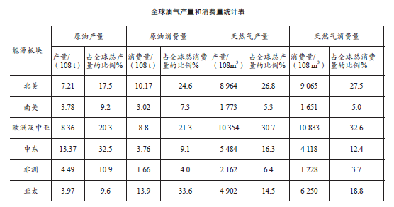 BP公司將全球能源分布劃分為北美、南美、歐洲及中亞、中東、非洲、亞太6個(gè)板塊, 其中,中東和非洲的油氣生產(chǎn)量遠遠大于消費量[3],亞太地區的油氣生產(chǎn)量遠遠小于消費量, 其他地區的油氣生產(chǎn)量和消費量基本持平(如下表)。需要說(shuō)明的是,歐洲及中亞板塊的產(chǎn)油區實(shí)際位于俄羅斯亞洲部分和中亞地區,因此,雖然整體而言生產(chǎn)量和消費量大體平衡, 但實(shí)際上西歐所消費的油氣約40%從俄羅斯和中亞地區進(jìn)口。由于各個(gè)地區間的能源供需極不平衡,而管道運輸是實(shí)現大量油氣資源長(cháng)距離轉移的最優(yōu)方式,因此管道的發(fā)展成為必然。