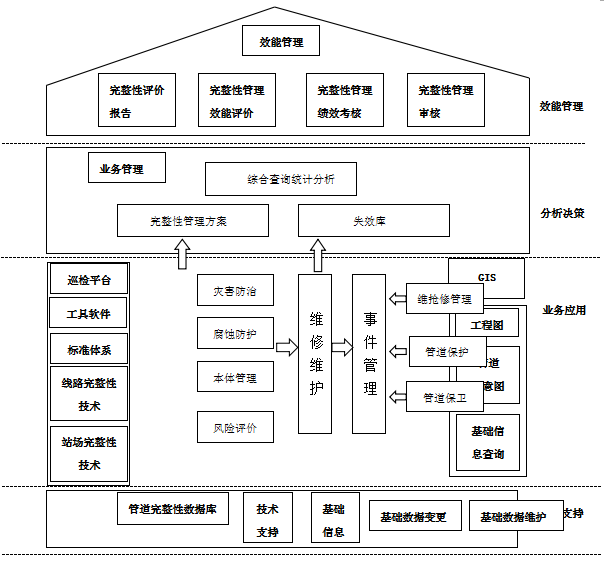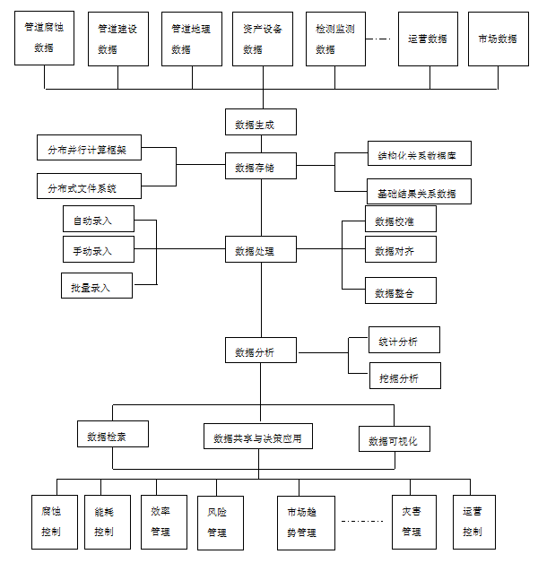 智能化管網(wǎng)系統是一個(gè)龐大的應用工程系統,將眾多相對獨立的管道數字化,集成化和產(chǎn)品化,整合為以海量數據庫為基礎的系統,實(shí)現數據共享,具有智能化、數字化、可視化、標準化、自動(dòng)化、一體化特征,并具有專(zhuān)業(yè)性、兼容性、共享性、開(kāi)放性、安全性特點(diǎn),最大限度消除信息孤島。智能化,即實(shí)現管道的運行優(yōu)化、管安全風(fēng)險的預測預警、應急搶險的交互聯(lián)動(dòng)響應;數字化,通過(guò)文檔資料及圖片資料的結構化、索引化,加強知識共享,更為設備更新改造提供便捷;可視化,實(shí)現管相關(guān)數據的圖形、圖像、視頻、圖表分析信息的多維度查詢(xún)及可視化展示;標準化,生命周期的業(yè)務(wù)標準、技術(shù)標準、數據標準,以及設計、建設期成果的數字化移交標準;自動(dòng)化,完善管自控儀器儀表、檢測設備及監控系統,實(shí)現管運行狀態(tài)的自動(dòng)檢測;一體化 ,即全面整合生產(chǎn)運行的實(shí)時(shí)數據和管理應用的業(yè)務(wù)數據,通過(guò)大數據建模分析實(shí)現決策支持。