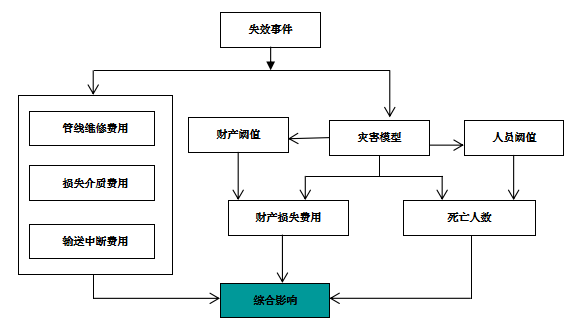 針對高后果區、地區等級升級地段,采用基于歷史失效數據和基于可靠性理論的計算模型,考慮天然氣管道失效模式對后果的影響,建立管道失效概率計算方法;分析管道事故災害類(lèi)型,并考慮財產(chǎn)損失、人員傷亡、管道破壞、服務(wù)中斷和介質(zhì)損失等管道失效后果情景,建立天然氣管道失效后果的定量估算模型[18]。