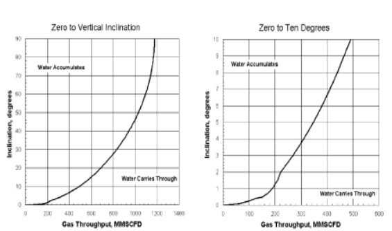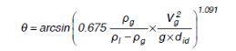 是液體和氣體密度,g 是重力,是氣體速度,θ是傾斜角,管道內徑,氣體的密度由壓力和溫度確定,在角度小于0.5時(shí)關(guān)鍵的Froude參數經(jīng)計算是0.35