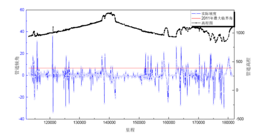 2011 年為例,取最大臨界角值作為2011 年臨界角,臨界角大于管道傾角的位置即存在積液風(fēng)險和內腐蝕敏感位置有62 處,