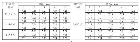 3  開(kāi)挖點(diǎn)壁厚測量原始數據表