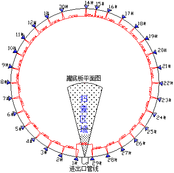 圖14 儲罐底板導波檢測點(diǎn)分布示意圖