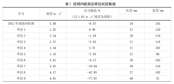 (3)牽拉試驗是對檢測器檢測能力進(jìn)行驗證,對缺陷特征進(jìn)行建模,實(shí)現尺寸量化的最有效手段。