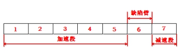 牽拉試驗管道由7根鋼管組成,口徑均為1 219 mm。漏磁內檢測器重量4. 2 t,為了進(jìn)行西二線(xiàn)螺旋焊縫裂紋型缺陷不同速度下缺陷特征研究,根據現場(chǎng)嘗試,布置試驗管道如下:前5根為加速段,第6根為缺陷管,最后1根為減速段(見(jiàn)圖4)。由于漏磁內檢測器前節磁化節采用高磁能磁鐵,對管壁吸附力強,經(jīng)現場(chǎng)嘗試,1根鋼管能滿(mǎn)足最高牽拉速度下的減速要求。缺陷管通過(guò)法蘭及螺栓與上下游管節連接,其余管節焊接連接。