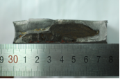 根據牽拉試驗數據,按照平均軸向投影長(cháng)度26 mm,周向投影寬度98 mm計算,得到此裂紋型缺陷長(cháng)度為101 mm,大于根據斷口測量得到的缺陷最長(cháng)64 mm。據判斷,是因為該處缺陷信號幅值較大,數據分析時(shí)識別出的周向投影長(cháng)度過(guò)大造成的。