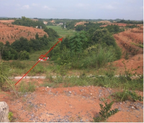 圖5環(huán)焊縫缺陷2現場(chǎng)地勢照片(紅色方框為缺陷位置)