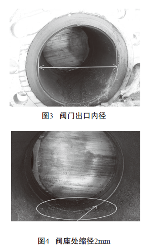 克烏管道干線(xiàn)采用DN250、PN6.4閘板閥(見(jiàn)圖1、圖2)。實(shí)測通徑僅為240mm(見(jiàn)圖3)。閥座位置有2mm的縮徑,即閥門(mén)全部開(kāi)啟后的內徑為236mm(見(jiàn)圖4),存在卡阻風(fēng)險。
