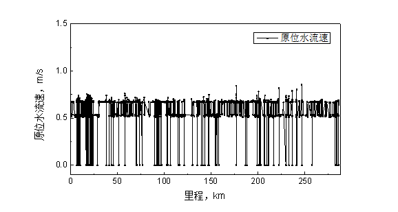 該管段原位水流速沿里程分布的趨勢如圖4所示。其中原位水流速接近0的里程位置,為該管段在此時(shí)間分區的水積聚風(fēng)險位置。