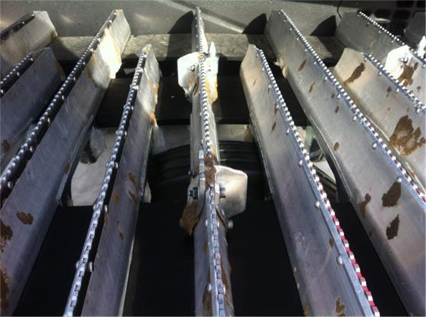 一是鏈軌式車(chē)輛在有坡度的雪地上行走,側滑是較大的風(fēng)險之一。因此挖掘機在坡度處必須進(jìn)行清理,削平坡度。同時(shí),如果在鏈軌上焊接上有多個(gè)側面的小擋板,阻止鏈軌側滑,應該能夠起到較好的效果,見(jiàn)圖6、圖7。