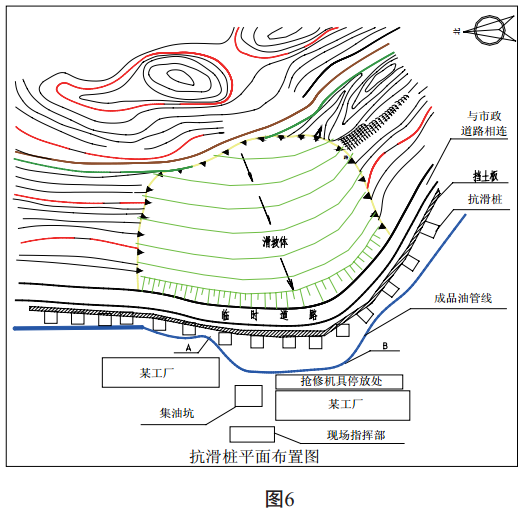 根據滑坡的危害結合長(cháng)輸管道的特點(diǎn), 經(jīng)過(guò)實(shí)地勘察了解現場(chǎng)情況后, 制定治理方案, 由設計部門(mén)進(jìn)行圖紙設計, 由施工單位進(jìn)行施工。(見(jiàn)圖 6、 圖 7)