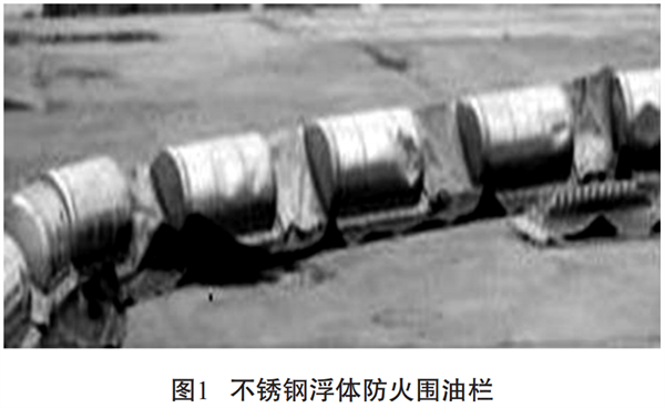 防火圍油欄用于水域控制溢油擴散和轉移,特別是溢油控制燃燒處理、 攔截、 防止火勢蔓延等作業(yè)中有著(zhù)不可替代的作用。 它由浮體、 裙體、 快速接頭三大部分組成, 浮體一般有不銹鋼浮體和陶瓷泡沫浮體, 具有阻燃防火功能; 裙體部分采用高強度PVC布縫制而成, 具有阻擋溢油從圍油欄下通過(guò)的作用; 快速接頭部分使圍油欄單體之間連接簡(jiǎn)捷、 迅速。 不銹鋼浮體防火圍油欄見(jiàn)圖1, 陶瓷泡沫浮體防火圍油欄結構見(jiàn)圖2。