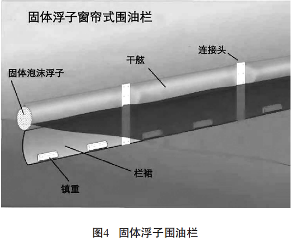 窗簾式圍油欄形狀類(lèi)似窗簾, 欄裙扁平而下垂。 浮子部分很大, 一般采用圓柱形, 抗風(fēng)浪能力好, 適用范圍廣。 窗簾式圍油欄有三大類(lèi): 固體浮子、 充氣浮子和岸灘圍油欄。