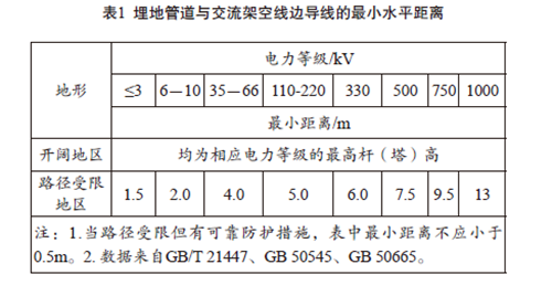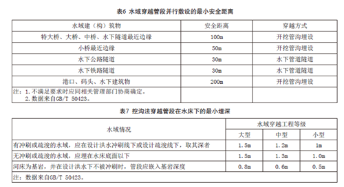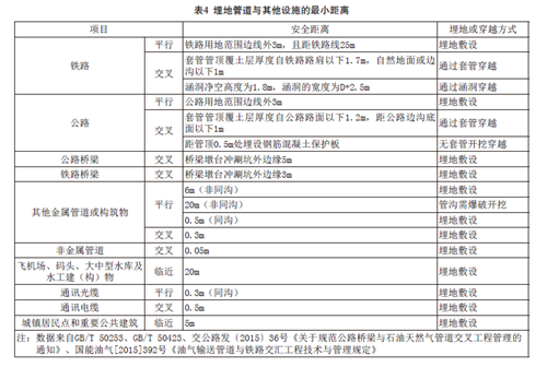 管道設計選線(xiàn)與外界的安全距離可參考表1~7,這些保護距離規定均來(lái)自現行國家或行業(yè)標準或規范。