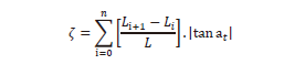 (9)坡度系數。坡度系數反映了設計線(xiàn)路沿 途的地形起伏程度,直接影響到管線(xiàn)鋪設和檢修的 難度?赏ㄟ^(guò)地理信息系統提取管線(xiàn)線(xiàn)路縱向部面 圖,然后經(jīng)三次樣條插值求得圓滑曲線(xiàn)來(lái)計算坡度 系數。其計算公式為:
