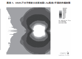 利用計算軟件確定泄漏后不同事故后果的嚴重程度,包括噴射火、閃火和爆炸,圖表5展示了10MPa壓力下水平方向噴射火的熱輻射值分布。依據不同的事故結果可以確定管道沿線(xiàn)某固定位置處的人員死亡概率,乘以泄漏頻率和點(diǎn)火概率即為該位置的人員死亡風(fēng)險。