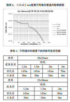 基于該方法,對于新建管道設施可以根據不同的設計參數給出不同的安全間距,可以針對不同的第三方設施采用不同的設計參數,比如壁厚、管材、埋深等;對于已建管道設施,可以驗證不同安全控制措施下的安全間距,采取針對性的措施。 ◢