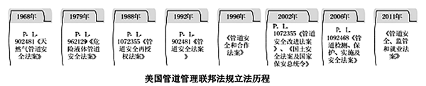 1968年《天然氣管道安全法案》和1979年《危險液體管道安全法案》是美國最早制定的專(zhuān)門(mén)管理管道安全的聯(lián)邦法律(下圖),隨后還頒布了《管道安全再授權法案》《管道安全法案》《管道安全和合作法案》《管道安全改進(jìn)法案》《國土安全法案及國家保安總統令》《管道檢測、保護、實(shí)施及安全法案》《管道安全、監管和就業(yè)法案》等與管道管理相關(guān)的法規,其中2002年頒布的《管道安全改進(jìn)法案》是美國管道基于“完整性管理”理念建立的最重要的立法。