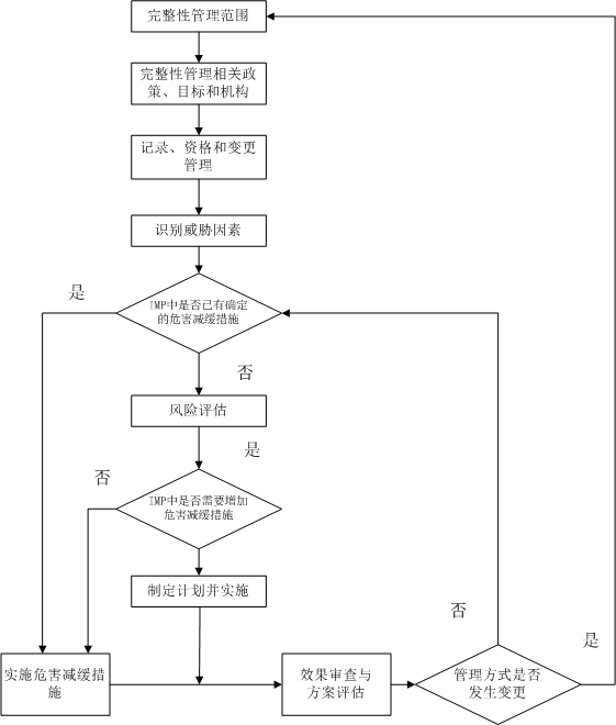 燃氣運營(yíng)企業(yè)制定和實(shí)施的完整性管理方案應當包含七個(gè)要素:基礎信息、識別威脅因素、風(fēng)險評價(jià)與分級、制定和實(shí)施風(fēng)險減緩措施、效能評價(jià)與成效評估、階段性評估與改進(jìn)、結果匯報。美國燃氣管理機構制定的其他標準、規范和指南都是按照這七個(gè)方面展開(kāi)。完整性管理基本流程見(jiàn)圖3。