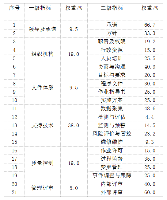 該審核指標體系涵蓋了管道完整性管理的各項具體要求,能夠科學(xué)、全面地反映管道完整性管理活動(dòng)開(kāi)展的工作現狀,不僅著(zhù)眼于完整性的實(shí)施有效性,更著(zhù)重于體系架構的全面性和技術(shù)內容的準確性,要素設置全面,問(wèn)題設置合理。