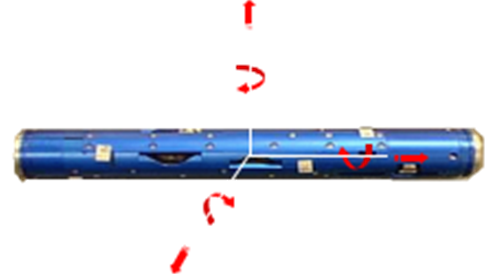 該系統是高清晰度漏磁檢測器加裝IMU慣性測量裝置的組合設備。其原理是由 3 個(gè)正交相對的陀螺儀組成的慣性測量裝置(IMU)和設備上的加速計測定設備沿管道移動(dòng)中 X、Y 和 Z 軸方向的角速度和線(xiàn)速度的變化,將IMU中記錄的路線(xiàn)與沿管道中心線(xiàn)每1~2 km范圍內的地面GPS測量位置相關(guān)聯(lián),通過(guò)三維測繪管道數據來(lái)精確描述管道走向(圖 5、6)。
