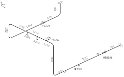 某站場(chǎng)振動(dòng)管道材質(zhì)為L360N,管道規格Ф273×6.3 mm。投運時(shí)間2014年11月,介質(zhì)為純凈天然氣,壓力表為3.0 MPa,出站壓力為2.6 MPa,設計溫度-50~70℃,運行溫度5~20℃。通過(guò)前期資料調查和現場(chǎng)調研,該管道運行時(shí)存在較大振動(dòng)并伴有管內介質(zhì)嘯叫。初步懷疑振動(dòng)是因管道改造設計不盡合理、流道變化較劇烈、上下游壓降較大等因素造成的。