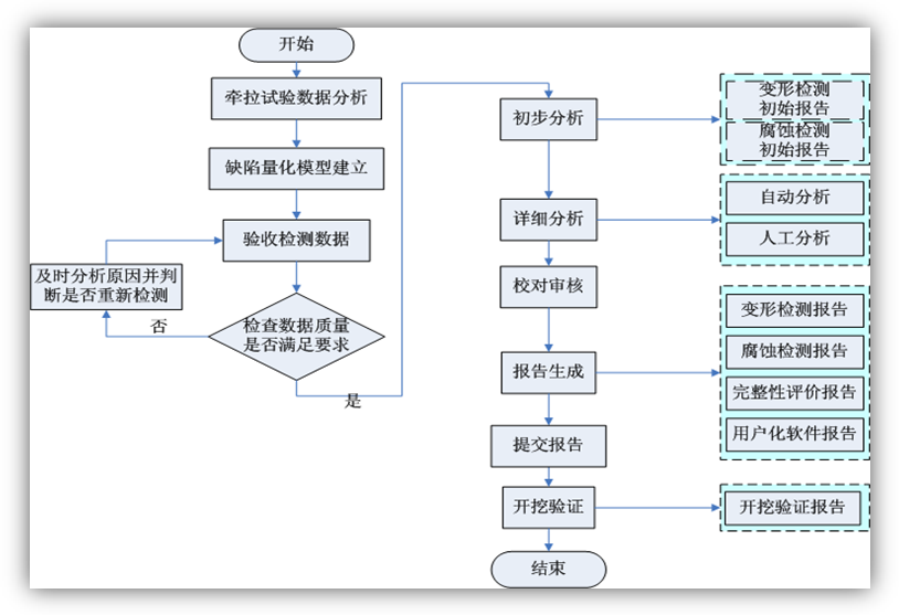 是由數據分析人員利用數據分析系統、結合管道建設維修資料并憑借數據分析經(jīng)驗對檢測器采集到的檢測數據進(jìn)行分析處理,最終形成檢測報告的過(guò)程。數據分析是管道內檢測重要組成部分,其結果的精確度關(guān)系到內檢測服務(wù)的成敗,對保障管道安全運營(yíng)具有重要意義。