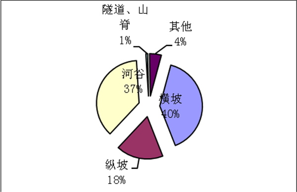 圖3  除水毀災害之外的地質(zhì)災害在不同地段的分布