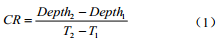 基于管道內檢測數據對比的腐蝕缺陷生長(cháng)速率計算普遍采用線(xiàn)性生長(cháng)模型,即認為兩次內檢測的時(shí)間間隔內,腐蝕缺陷呈勻速或線(xiàn)性增長(cháng),并且僅考慮缺陷深度的增長(cháng)[4]。生長(cháng)速率計算公式(1)如下。