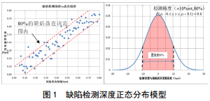 根據正態(tài)分布規律,如果兩次檢測的缺陷深度分別服從正態(tài)分布N1(μ112)和N2(μ222),則兩次深度差值服從正態(tài)分布N3(μ21,σ1222)。