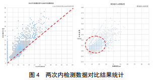 該管段在2009年首次檢測中共發(fā)現2 523處外部金屬損失缺陷, 2015年次輪檢測中發(fā)現了3 074處外部金屬損失缺陷。通過(guò)內檢測數據對比,得到兩次檢測深度對比和缺陷生長(cháng)速率統計,如圖 4所示。