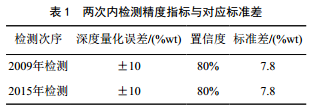 兩次內檢測采用相同的檢測設備和量化模型,誤差取決于內檢測精度指標,符合正態(tài)分布。內檢測精度指標和對應標準差如表 1所示。