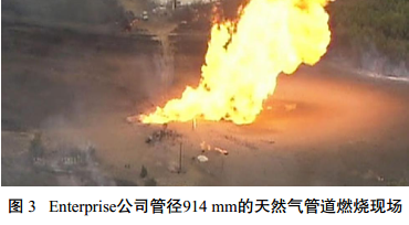 C&H公司鉆車(chē)操作員鉆到1.2 m深度后,鉆頭刺穿了Enterprise公司的管道,管道頂部破裂分離長(cháng)約33.5 m(圖 1)。高壓氣體瞬間噴射將60噸重的鉆車(chē)拋出超過(guò)30 m(圖 2),并且引起劇烈燃燒(圖 3)。 C&H鉆車(chē)操作員當場(chǎng)死亡,其他6名工人受傷?傌敭a(chǎn)損失和清理費用為102.9萬(wàn)美元。