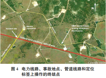 在電力線(xiàn)路規劃階段,受委托的SAM(測繪)公司為了識別沿輸電線(xiàn)路周邊所有的地下公用設施,于2009年11月3日,向Texas 811(德克薩斯州挖掘安全系統公司)提出了一個(gè)定位申請,以便測量區域范圍和標記地下管線(xiàn)的位置。接到申請后, Texas 811分別給Enterprise公司和ET公司發(fā)送天然氣管道定位標簽。隨后ET公司管道定位人員定位并標記了地下管道,同時(shí)告知Texas 811定位工作已經(jīng)完成。 Texas811立即聯(lián)系SAM公司通知ET公司的管道已被標記(圖 4)。但是,相距很近的 Enterprise公司的管道仍然沒(méi)有被標記。
