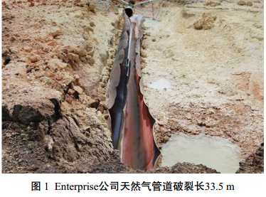 2010年6月7日14:40, C&H公司(施工承包商)為Brazos公司安裝138 kV輸電線(xiàn)路線(xiàn)桿用鉆車(chē)在地面鉆孔,這條線(xiàn)路需要跨過(guò)Enterprise公司和ET公司兩條平行相隔大約9 m、直徑均為914 mm的高壓天然氣管道。
