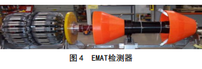 (1)內檢測技術(shù)漏磁檢測MFL與超聲波檢測UT技術(shù)結合,可以深入了解涂層受損區域以及與應力開(kāi)裂腐蝕相關(guān)的局部環(huán)境, UT檢測器和電磁超聲EMAT可用于裂縫檢測和鑒別,如圖 4所示。