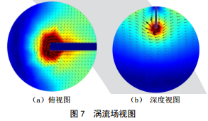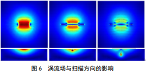 切向渦流陣列TECA線(xiàn)圈的布置改善了表面裂紋失效缺陷的響應,渦流EC方向垂直于掃描方向,渦流場(chǎng)繞過(guò)其周?chē)N近縱向裂縫,直接受表面破裂及其尺寸的影響,如圖 6和圖 7所示。