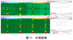 采用開(kāi)發(fā)的先進(jìn)專(zhuān)用軟件,特別是簡(jiǎn)化的標準化探頭和校準,進(jìn)行了實(shí)時(shí)提離檢測和補償檢測,如圖 10和圖 11所示。