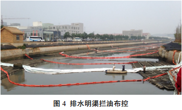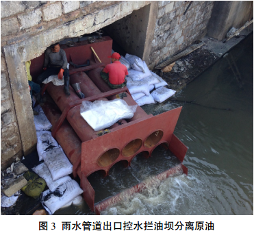 (6)在雨水管網(wǎng)出口、排水明渠、入?、污水處理廠(chǎng)設置8處攔截點(diǎn),共布設25道圍油欄、 51道吸油拖欄、 3道活性炭壩和1道控水攔油壩,用撇油器、抽油機、吸油氈等進(jìn)行油品回收,防止原油入海。污水處理廠(chǎng)及時(shí)開(kāi)閘接納含油污水,采用抽油泵對浮油進(jìn)行回收。