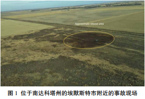 2017年11月16日,由TransCanada公司運營(yíng)管理的KeyStone輸油管道在美國南達科塔州的埃默斯特市附近發(fā)生破裂泄漏(圖 1)。該管道的運行控制中心位于加拿大阿爾伯特省卡爾加里,數據采集和控制系統(SCADA)監測到發(fā)生泄漏即刻關(guān)斷管道,現場(chǎng)確認管道發(fā)生破裂,泄漏量為794.9 m3。