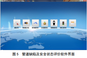 管道缺陷評價(jià)技術(shù)是確定管道維護方案的科學(xué)依據[7]。針對管道的體積類(lèi)缺陷、幾何變形類(lèi)及復合類(lèi)缺陷,調查研究國內外已有缺陷評價(jià)標準的適用性范圍及適用性,編制了一套管道缺陷評價(jià)技術(shù)規定文件及缺陷評估理論手冊,包括腐蝕、幾何凹坑、凹坑+腐蝕、機械劃傷缺陷評價(jià),同時(shí)也包括重車(chē)碾壓管道、管道懸空、特殊地段(穿越公路、鐵路)管道等的單項安全評價(jià)。開(kāi)發(fā)了管道缺陷及安全狀態(tài)評價(jià)軟件(圖 5),可對以上各種類(lèi)型的缺陷及特殊狀況進(jìn)行評價(jià),根據評價(jià)結果對管道的缺陷修復給出建議。