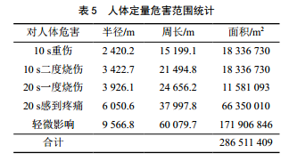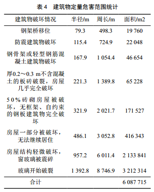 該爆炸事故對建筑物定量危害范圍如表 4所示。