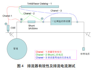 以直流排流器為例,需要檢測的內容有管道直流電位、排流電流、交流電壓、排流地床接地電阻等。測試接線(xiàn)如圖 4所示。